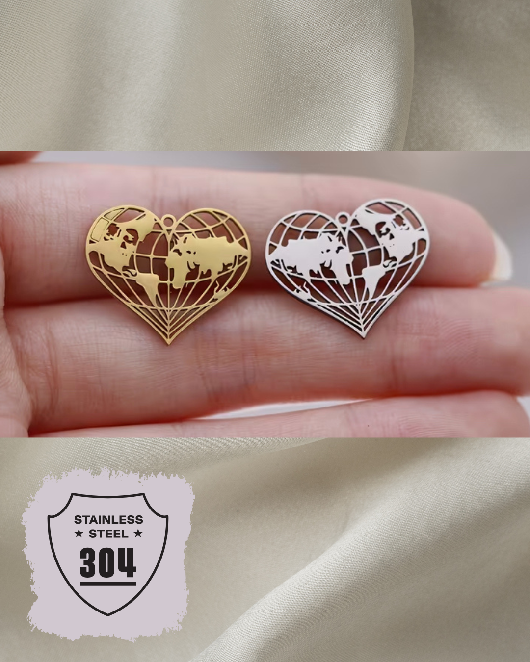 EDELSTAHL- Äquator Herz- Charm Silber + Gold