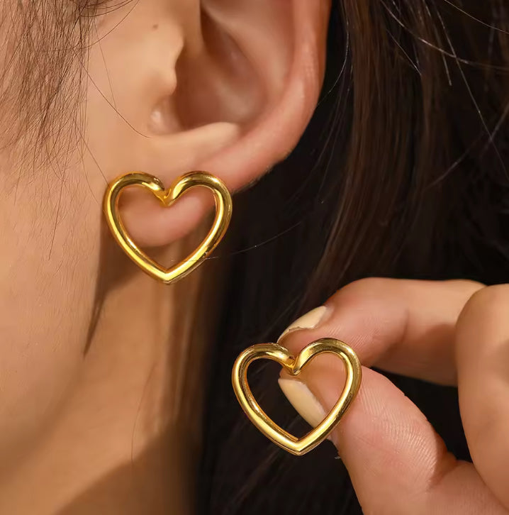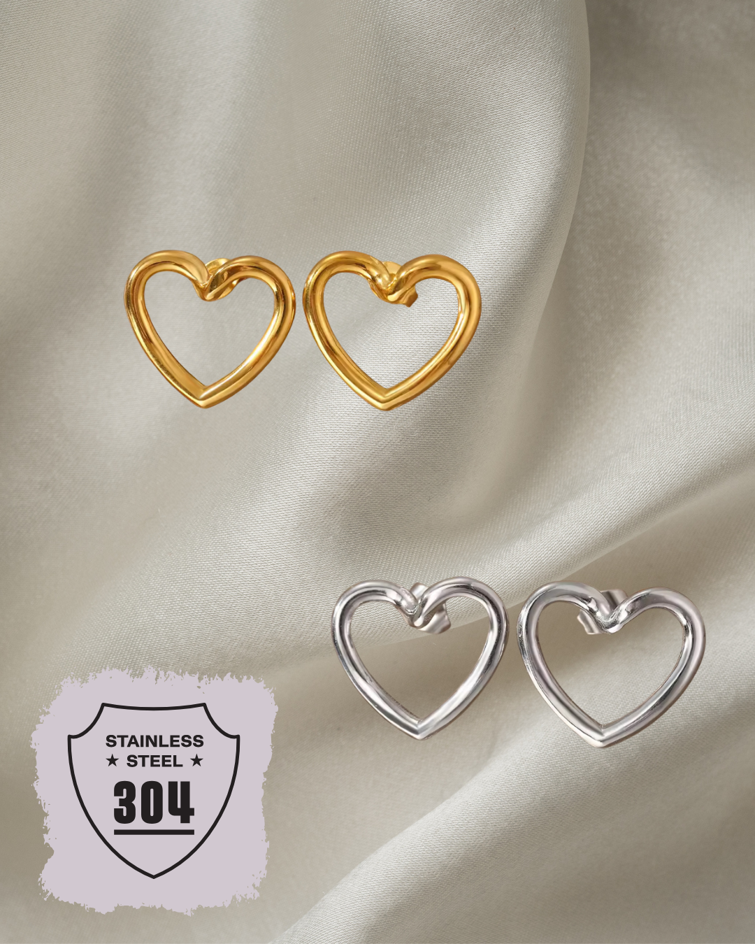 EDELSTAHL- Ohrringe „Open Heart Stud“ Silber + Gold