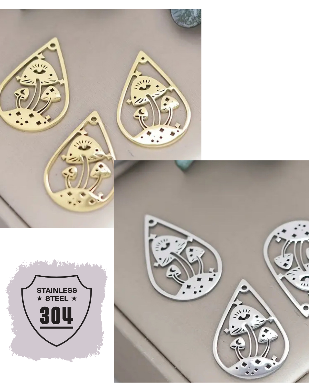 EDELSTAHL- Pilztropfen- Charm Silber + Gold