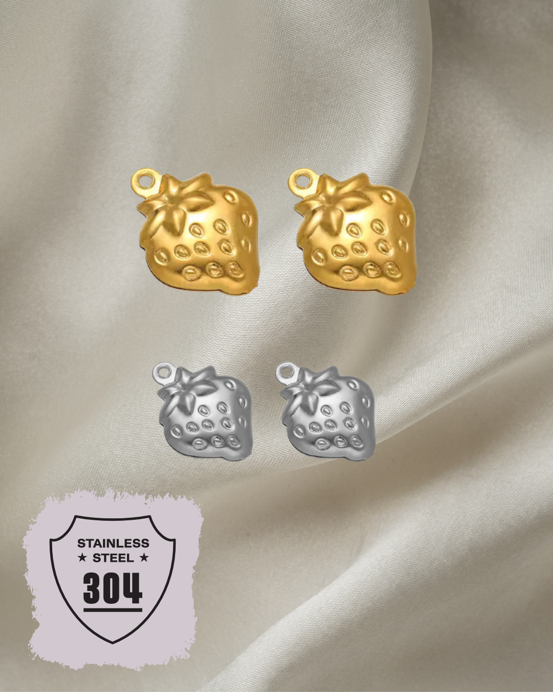 EDELSTAHL- Erdbeere- Charm Silber + Gold