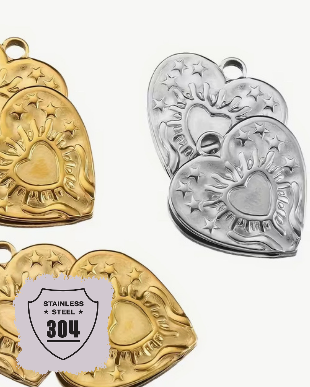 EDELSTAHL- Sonnenherz- Charm Silber + Gold