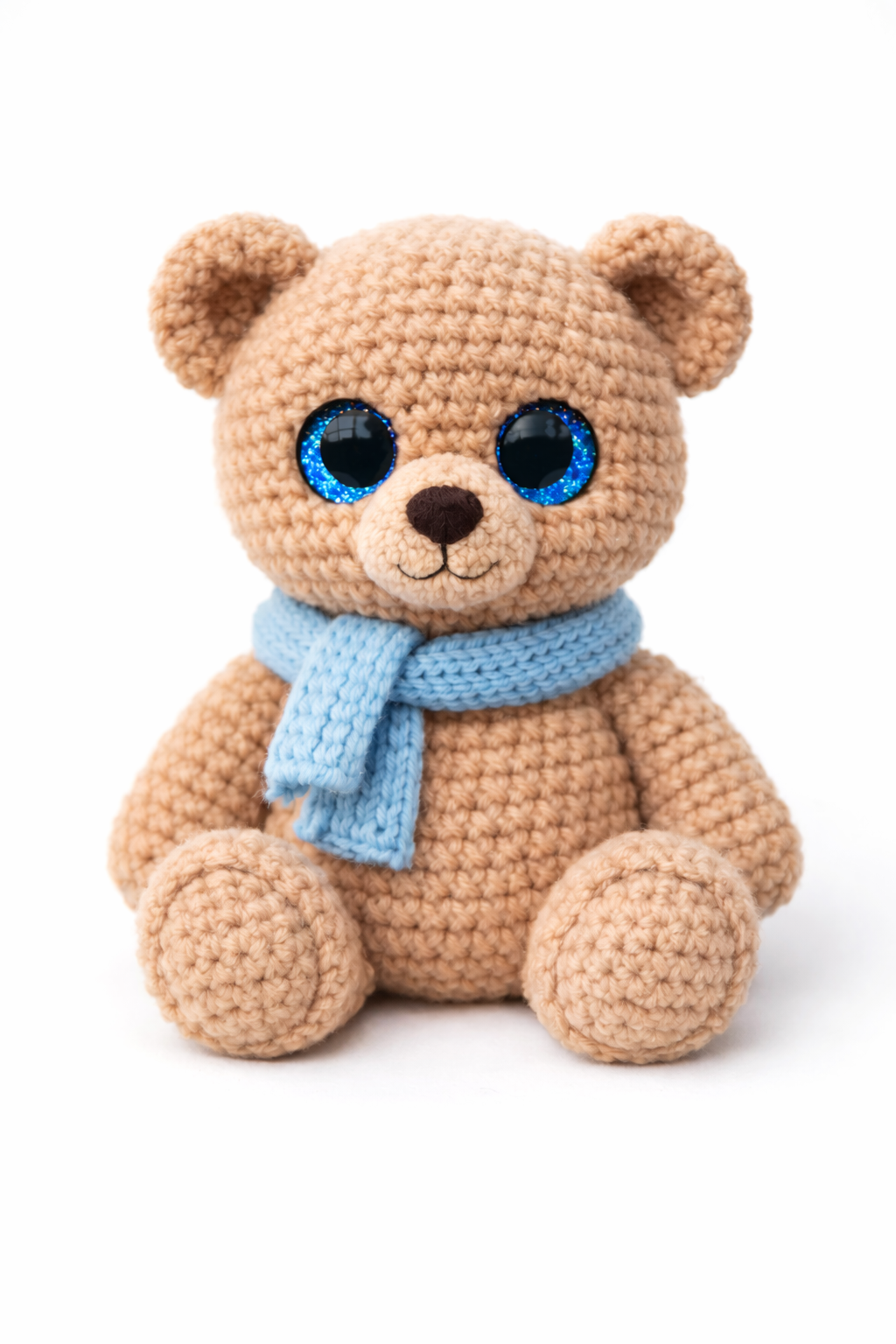 Es kann vorkommen, dass am Rand Stellen sind, die wie "abgeplatzt" aussehen, dies ist minimal und verschwindet in der Wolle, sobald die Augen befestigt werden.
