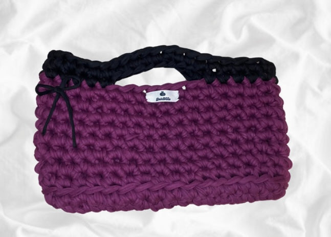 Handgefertigte Häkeltasche aus 100 % recyceltem T-Shirt-Garn.